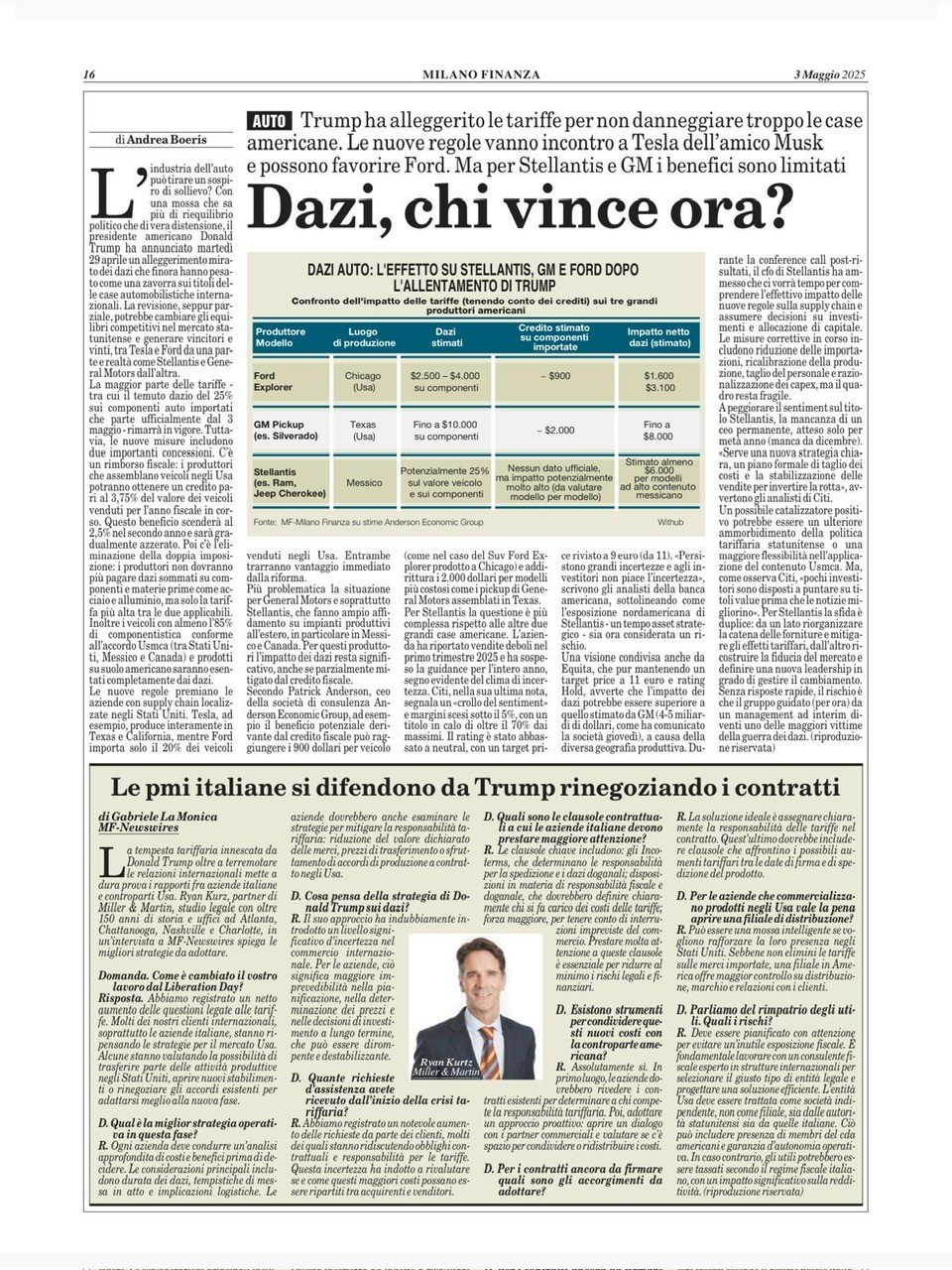 Tariff Q&A by Miller & Martin’s Italy Liaison Attorney Ryan Kurtz Published by Milano Finanza Newswire